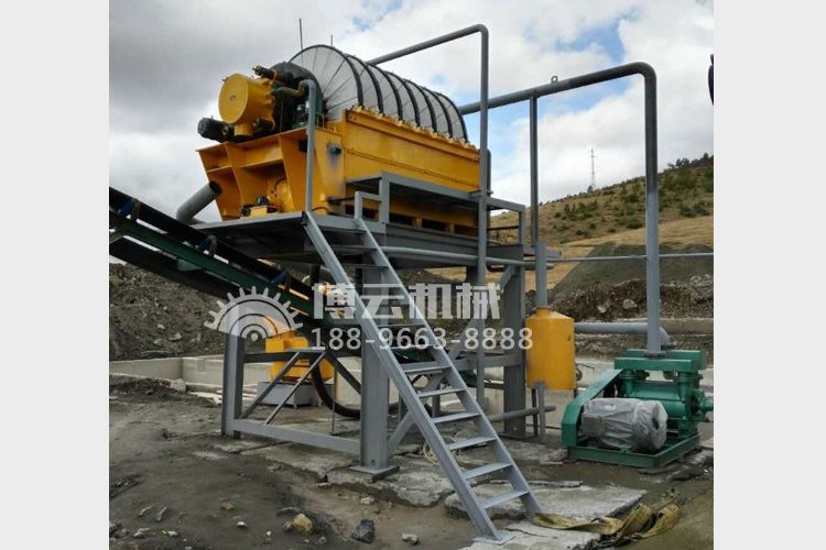 盤式真空過濾機由各個單獨的扇形片的圓盤構成。每一個扇形片為單獨的過濾單元,由濾布做成布套在扇形片上形成濾室。過濾盤由電機通過減速器及開式齒輪傳動來驅動,過濾盤順時針方向轉動,濾室里的礦漿在吸附區借助于真空泵在過濾介質兩側形成的壓力差,附著在過濾盤上形成濾餅后,攪拌器旋轉防止固體沉淀,濾餅離開液面后,在真空作用下繼續脫去水分。濾液透過濾布,經過濾液管,從分配頭排出。濾餅在卸料區由反吹風卸料落入排料槽,整個作業過程連續循環進行。